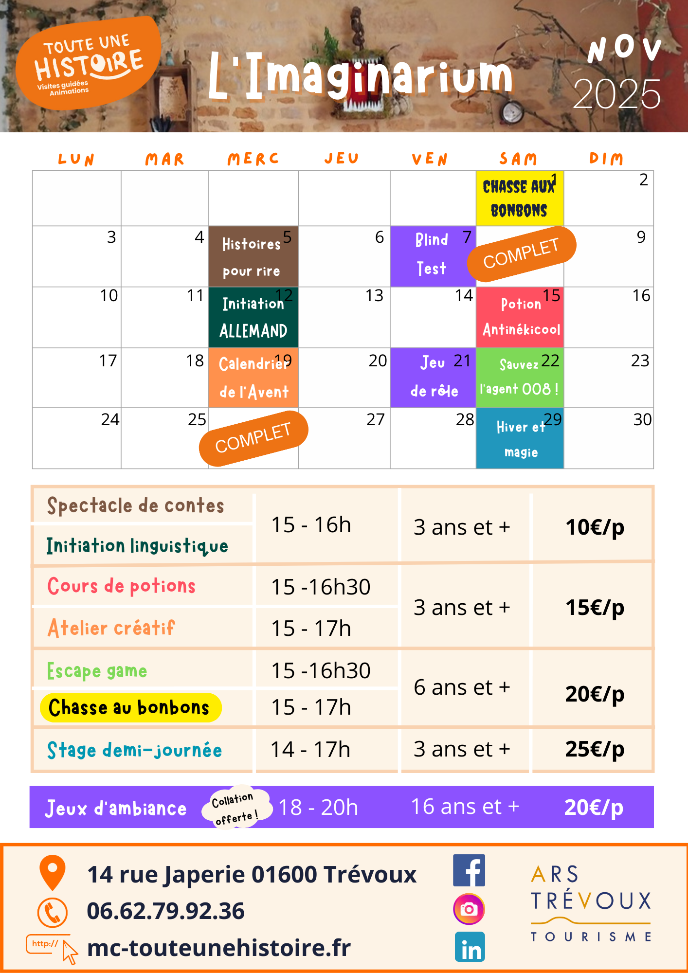 L'Imaginarium - Plannings d'octobre à décembre 2025